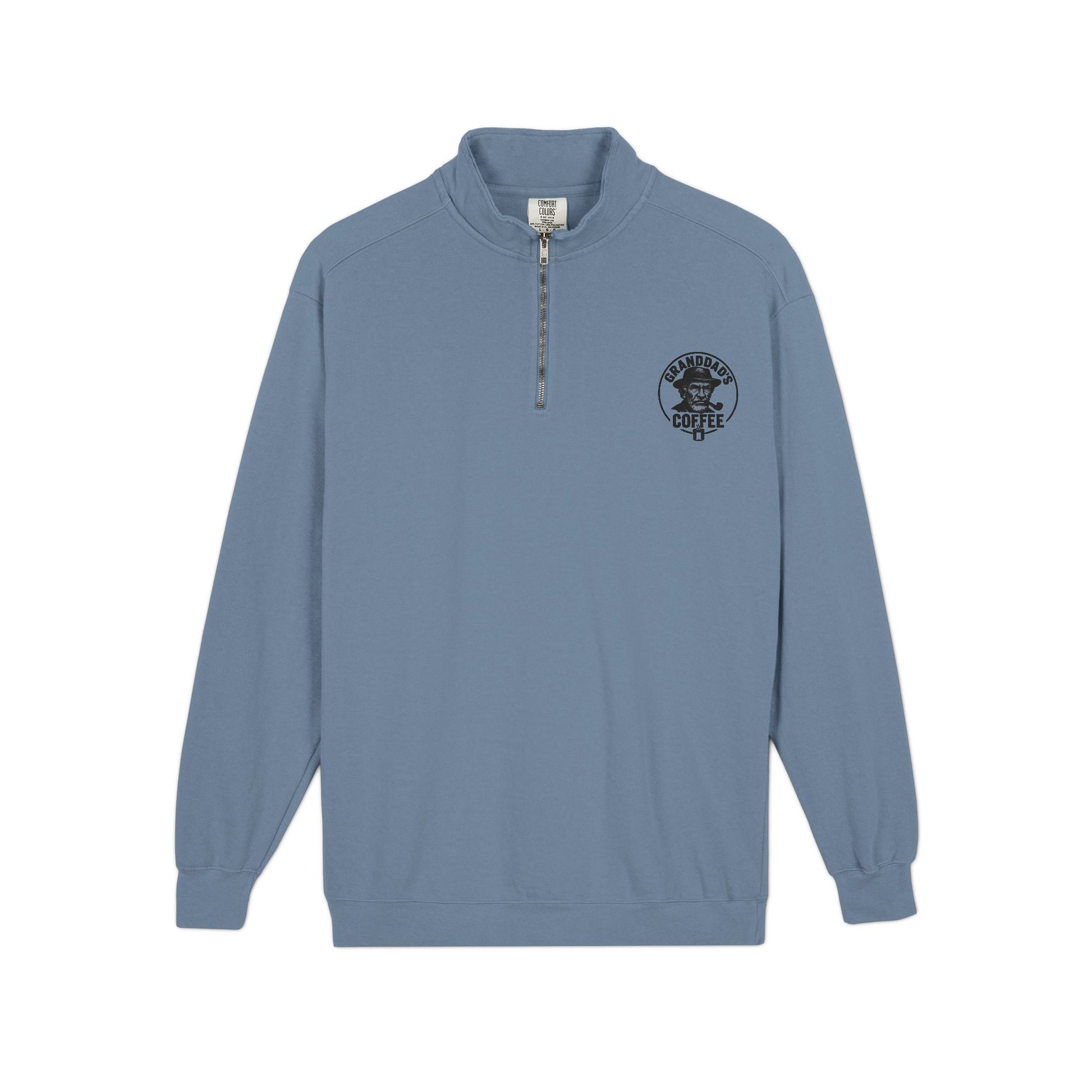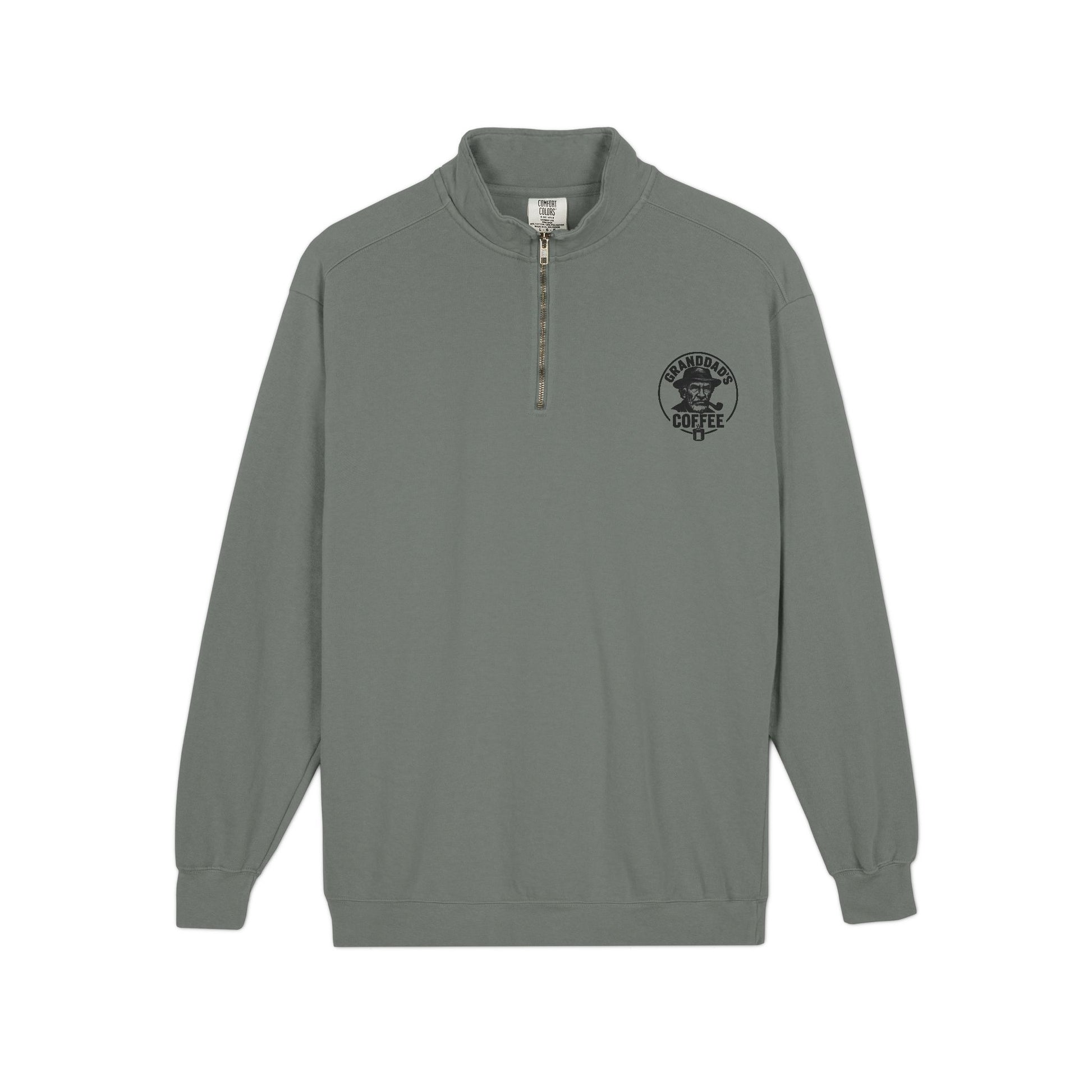 A soft, substantial quarter-zip built to live with you through slow mornings, road trips, and fireside evenings. The muted sage tone and small chest emblem keep the look understated and effortless—reach for it when you want something warm that doesn’t shout. The high, self-lined collar and smooth zipper add a tidy, practical edge while the relaxed cut and ribbed cuffs move with you. This sweatshirt feels like a familiar place to pause: warm, steady, and quietly confident.